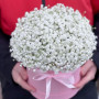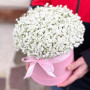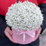 11 белых гипсофил в шляпной коробке в Рубцовске