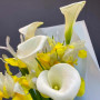 Букет из желтых ирисов и беллых калл в Рубцовске