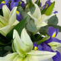 Букет из белых лилий с синими ирисами в Рубцовске